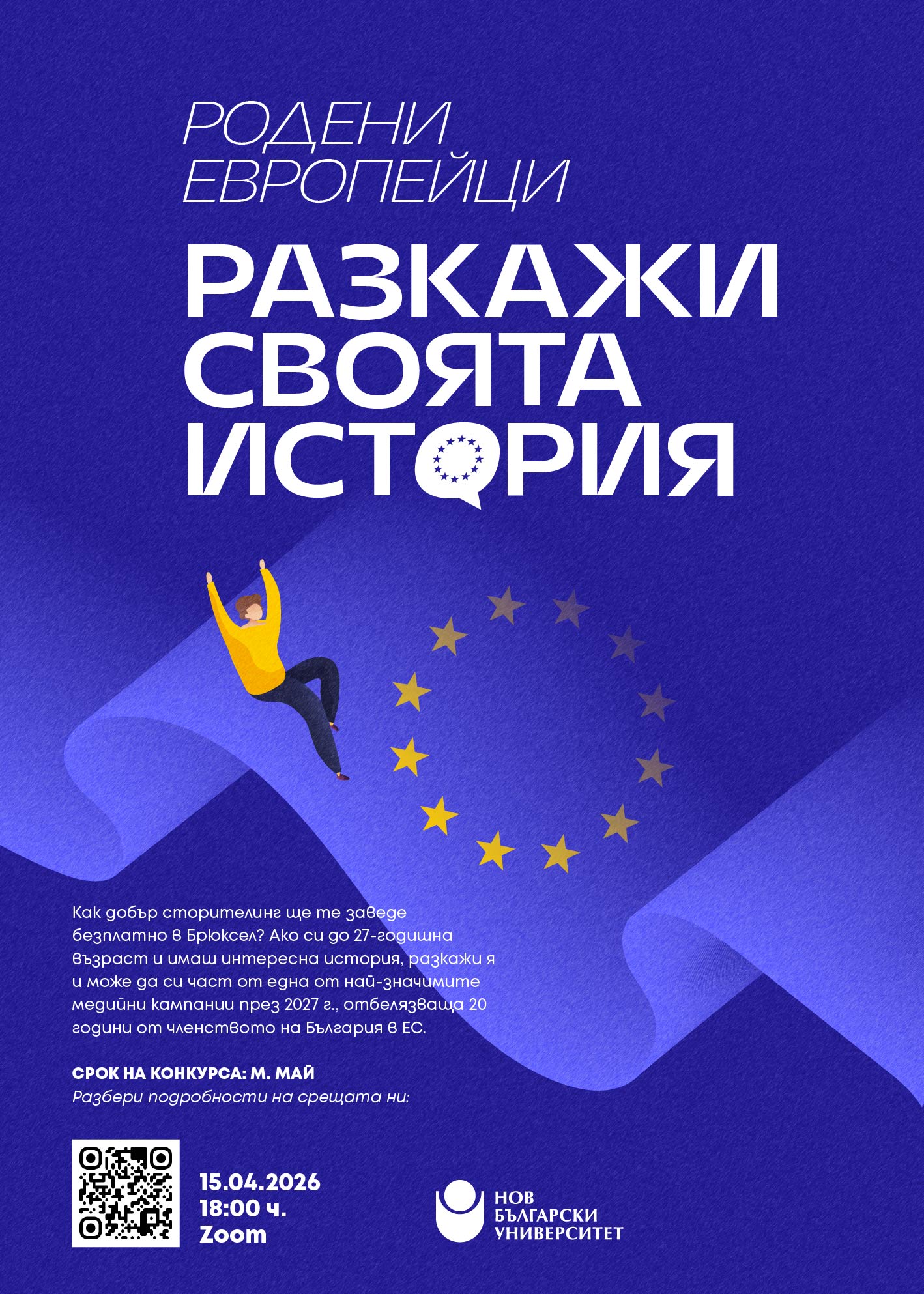 Нов български университет и Представителството на Европейската комисия в България организират конкурс, посветен на 20 години от членството на България в Европейския съюз.